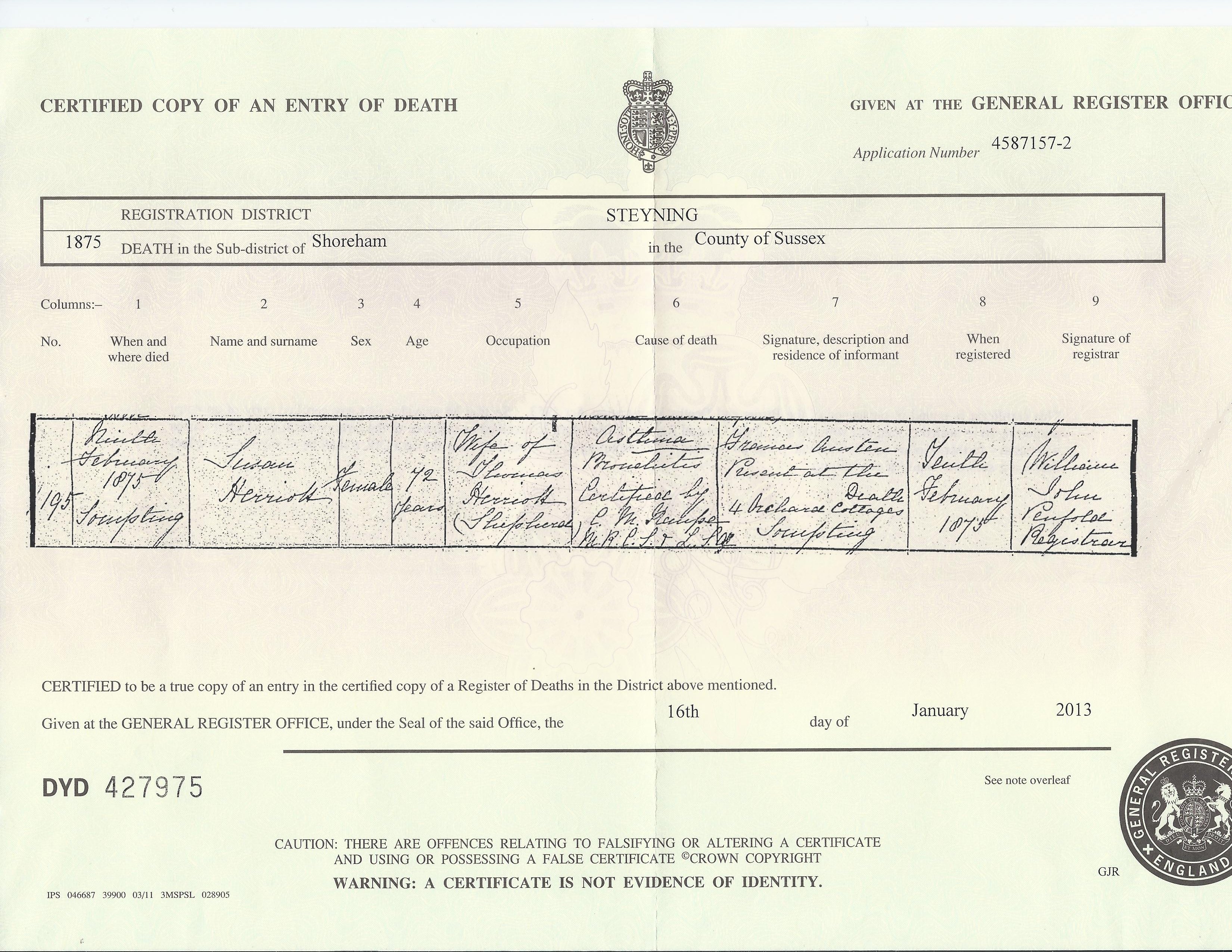 Susan Chatfield (Herriott_Heryet) Death 1802-1875