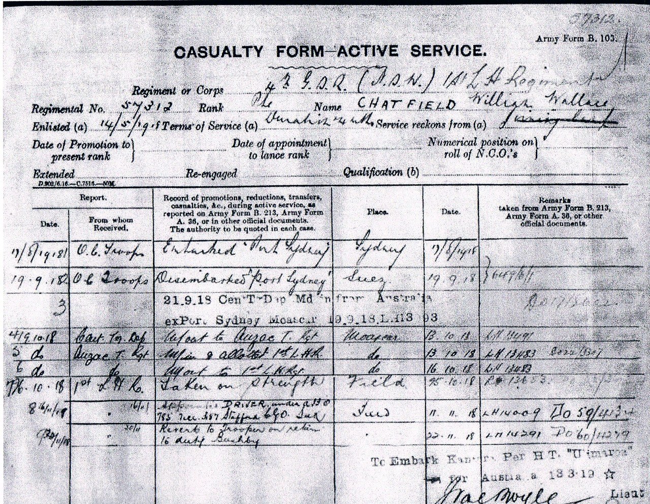 William Wallace CHATFIELD 1897-1953 WWI Active Service