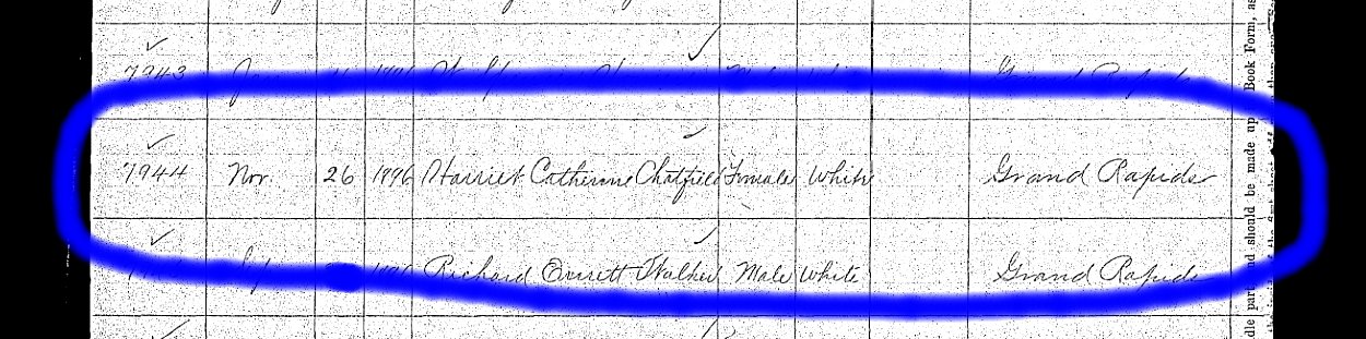 Harriet Catherine CHATFIELD 1896-1980 birth cert.