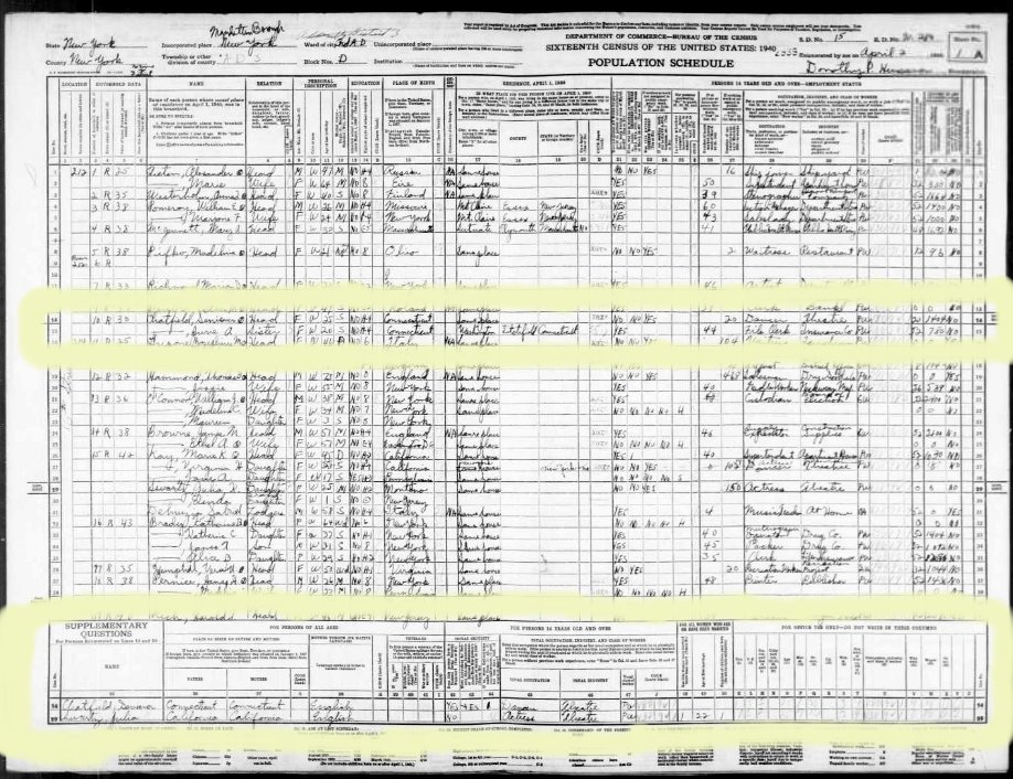 Mabel A (Jennifer) CHATFIELD 1914-1992 Census 1940