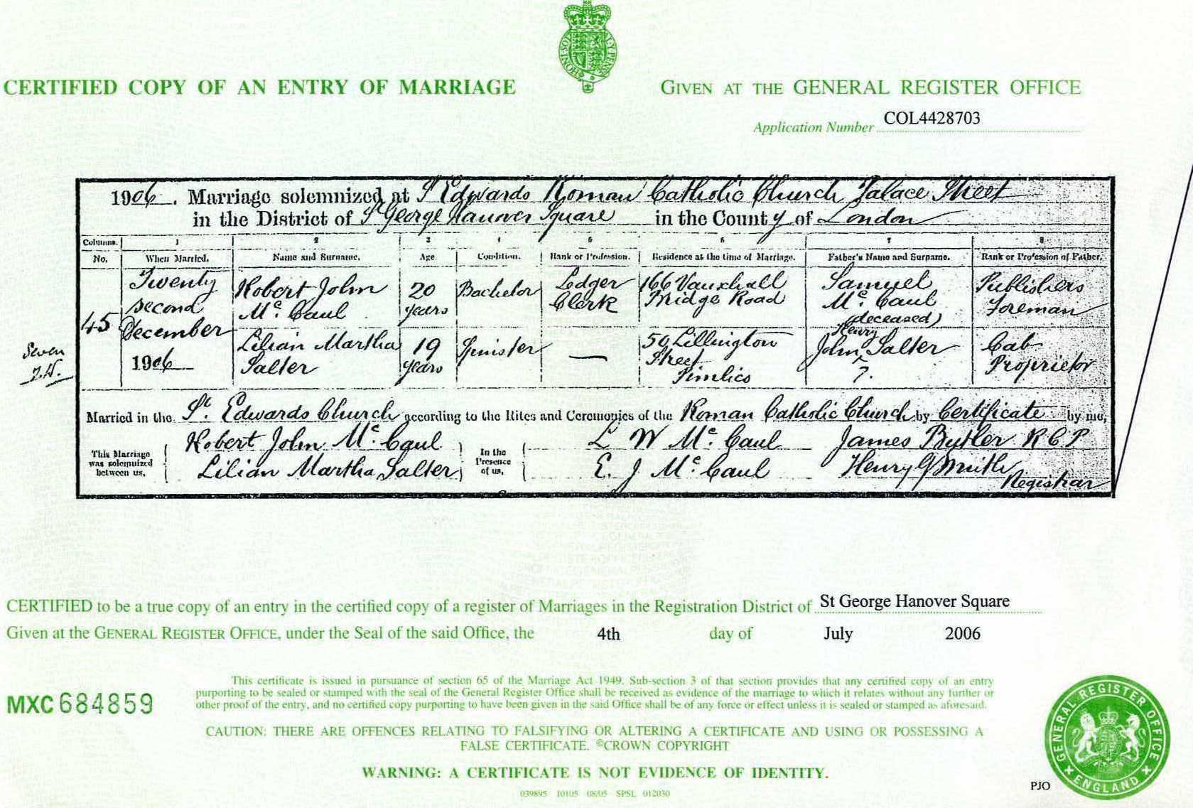 Married to Lilian Martha Salter.
