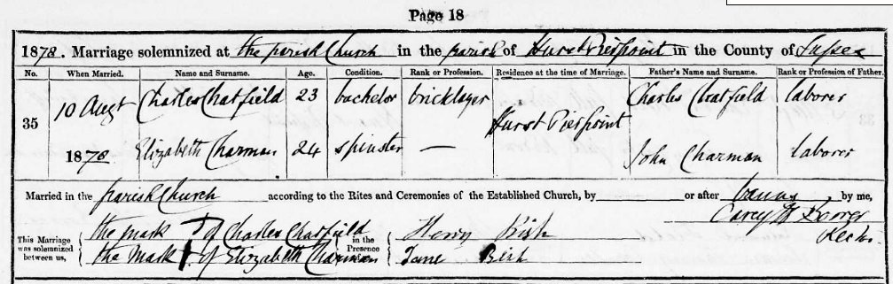 CHATFIELD Charles - CHARMAN Elizabeth Marriage 1878