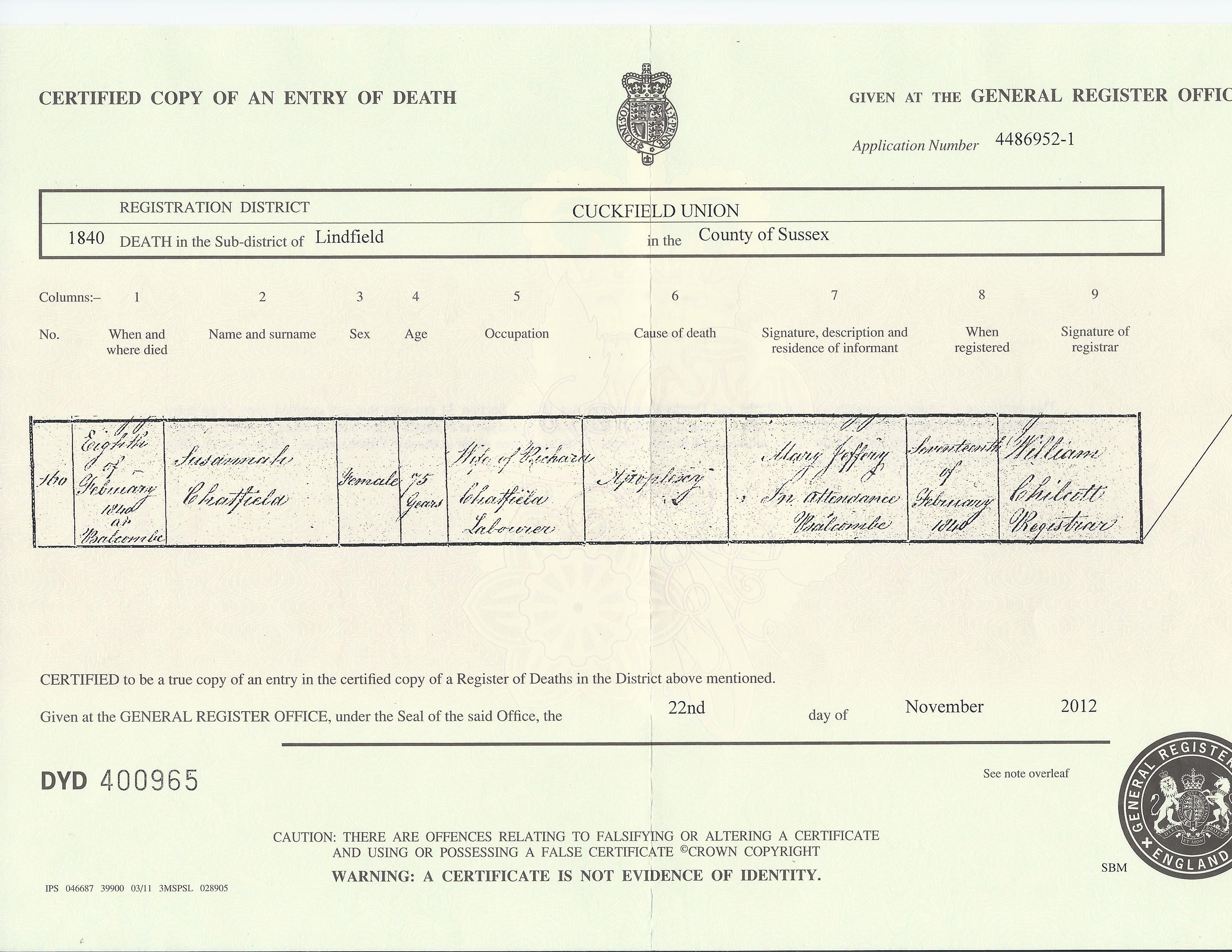 Susannah BURTENSHAW 1765-1840 Death Cert.