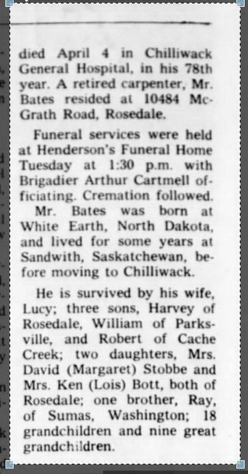 Fred Austen BATES 1892-1969 Obituary