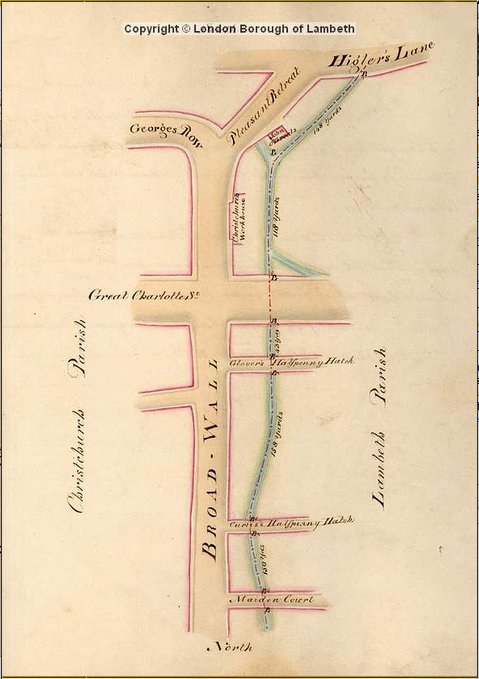Map of part of Lambeth/Southwark London where he was born.