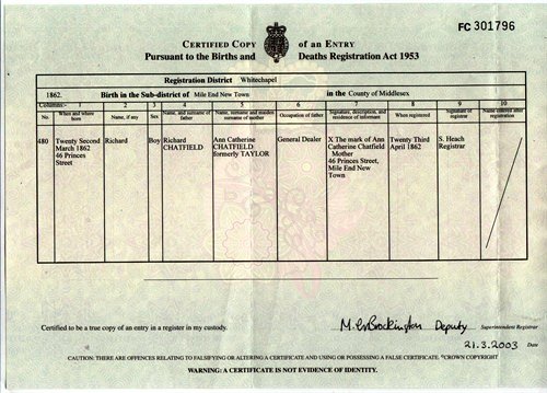 Son of Richard CHATFIELD & Ann Catherine TAYLOR