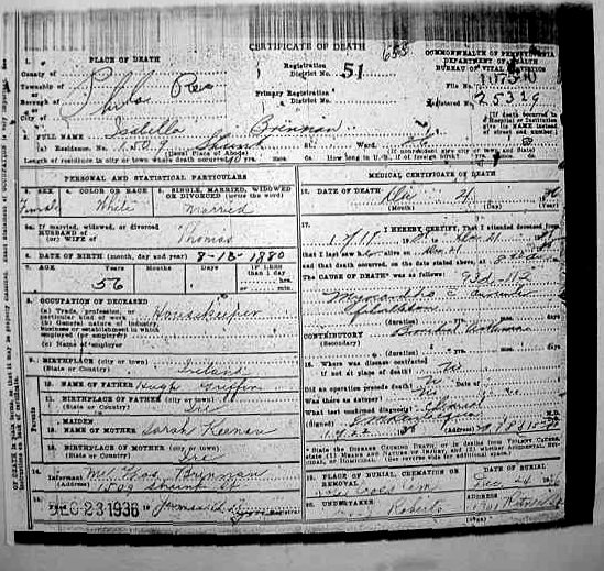 Isabella GRIFFIN 1877-1936 death record
