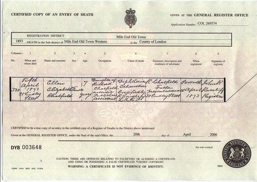 Death Ellen Elizabeth CHATFIELD 1885-1893 certificate