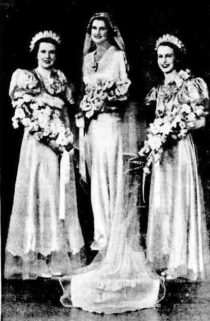 Lily on left, Mary centre, Edith Hulme on right.~~Married to K W Baxter 21 Aug 1937, St Andrew's CoE, Subiaco, WA.