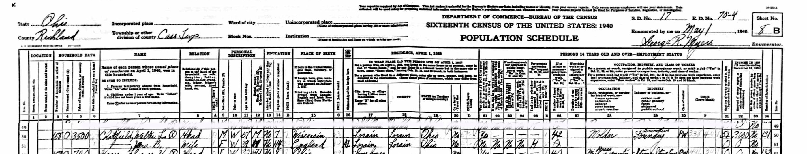 Walter Leroy CHATFIELD 1893/8-1967 Census 1940