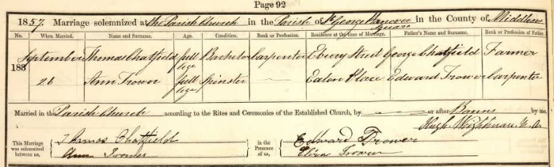 Marriage Certificate CHATFIELD Thomas - TROWER Ann 1857
