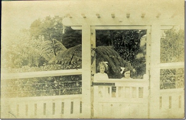 Postcard given to Wilma Beatrice HEATHER showing cousins Ngaio & Roma CHATFIELD about 1918.