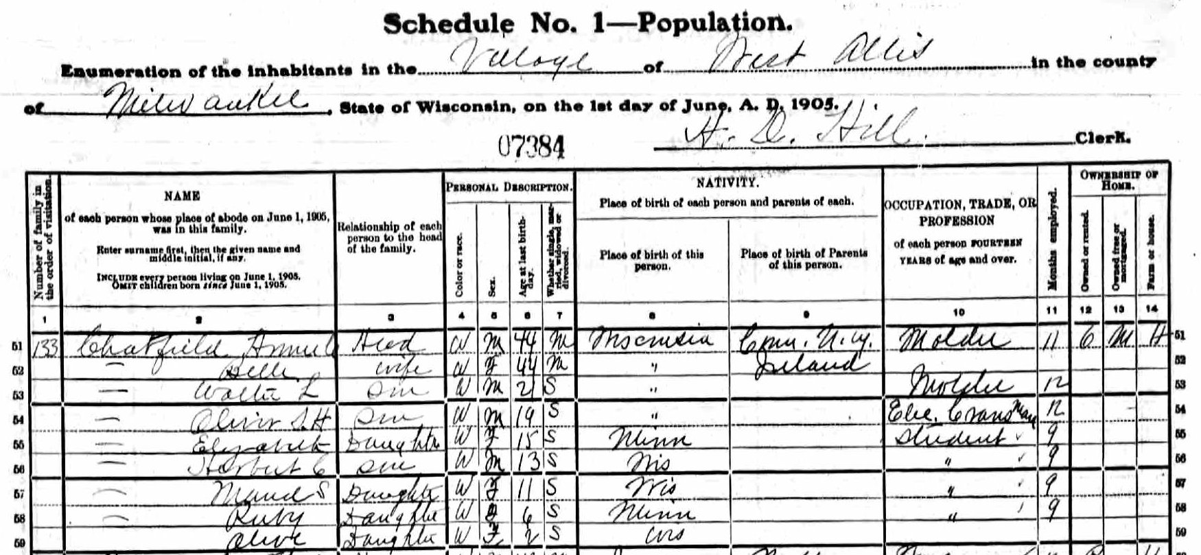 Walter Leroy CHATFIELD 1893/8-1967 Census 1905